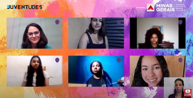 O bate-papo virtual teve a participação das alunas Beatriz Kayra de Paula, da Escola Estadual Tancredo de Almeida Neves, em Cláudio; Tatiane Zacariotto, da Escola Estadual Américo de Paiva, em Monte Santo de Minas; Ana Carolina da Silva e Lara Silva Siqueira, ambas da Escola Estadual Zoroastro de Oliveira, em Campanha; e Luíza Manuela Correia, da Escola Estadual Padre José Maria, em Santa Maria do Suaçuí. O encontro foi mediado pelas analistas educacionais da SEE/MG, Andrea Botelho e Samira Araújo.