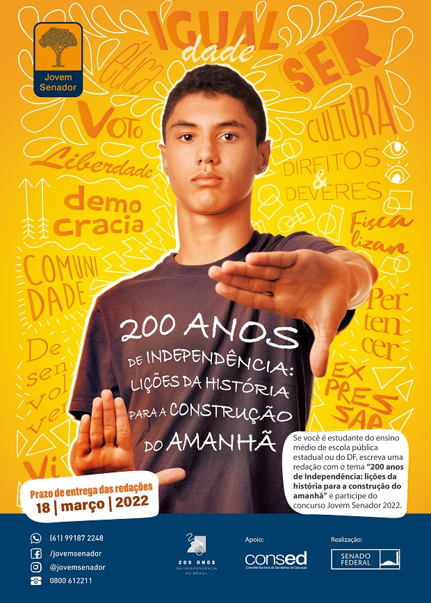 Escolas públicas estaduais que ofertam o ensino médio têm até o dia 18 de março para enviarem às secretarias estaduais de Educação as redações dos estudantes que vão concorrer a uma vaga no programa Jovem Senador 2022. A iniciativa é realizada pelo Senado Federal, que selecionará 27 estudantes de todo o país.