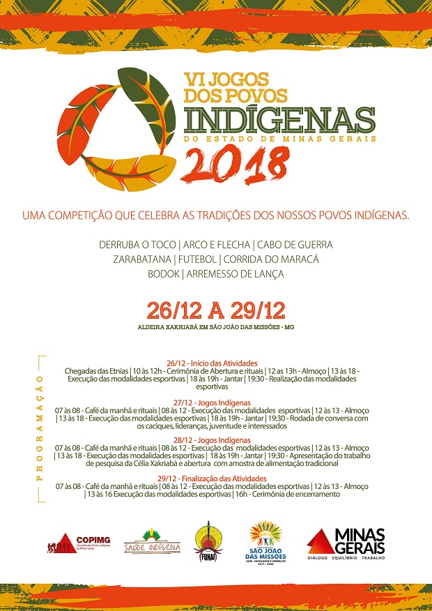 Confira abaixo a programação dos Jogos dos Povos Indígenas de Minas Gerais: