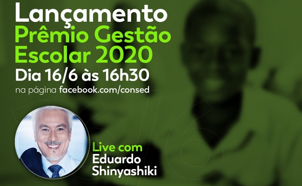 Uma live com o escritor e especialista em desenvolvimento das competências de liderança organizacional, educacional e pessoal, Eduardo Shinyashiki, vai marcar o lançamento do Prêmio de Gestão Escolar 2020. Será amanhã (16/6), a partir das 16h30, com transmissão pelo canal do Conselho Nacional de Secretários de Educação (Consed) no Youtube e no Facebook. O Consed promove a iniciativa em conjunto com a Organização dos Estados Ibero-Americanos (OEI) e a União dos Dirigentes Municipais de Educação (Undime).