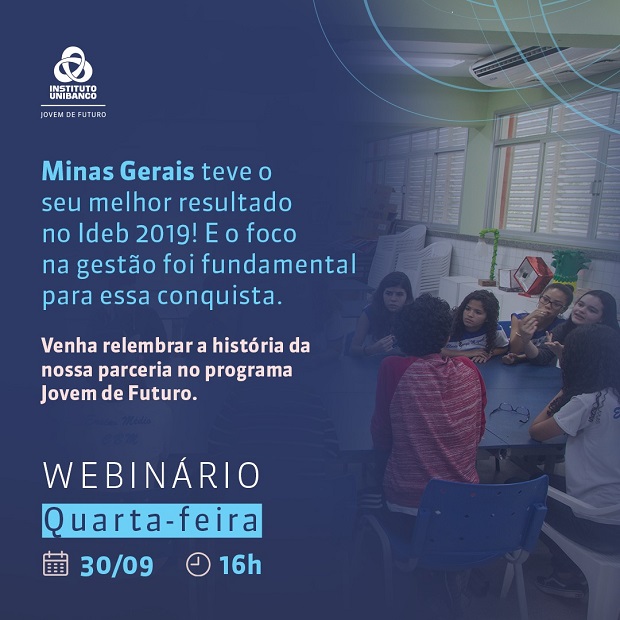 Há mais de uma década gerando impacto positivo na educação, o Jovem de Futuro será tema do Webinário “Implementação de programas educacionais: a experiência do jovem de futuro”. O programa, uma realização do Instituto Unibanco, integra, desde agosto do ano passado, um conjunto de ações desenvolvidas pela Secretaria de Estado de Educação de Minas Gerais (SEE/MG) para combater a evasão escolar, as desigualdades regionais no ambiente escolar e a elevação dos indicadores de aprendizagem. O webinário será transmitido, ao vivo, na próxima quarta-feira (30/09), às 16h, no Youtube do Instituto Unibanco.