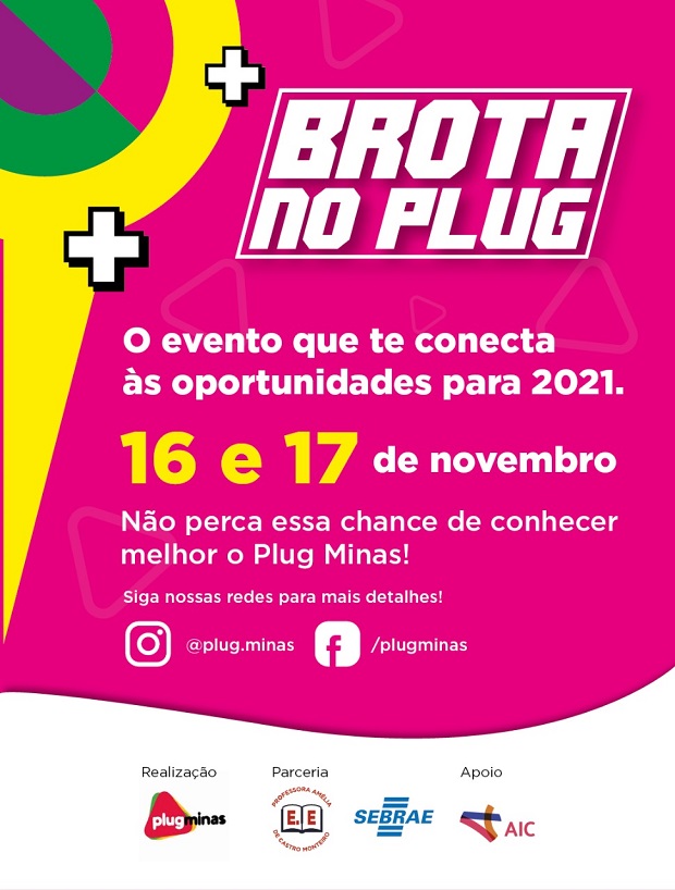 Na próxima semana, dias 16 e 17 de novembro, o Plug Minas promoverá o “Brota no Plug”, uma série de eventos virtuais que buscam promover a divulgação das ofertas de cursos disponíveis para 2021. O objetivo é esclarecer a todos os interessados sobre as iniciativas e as ações de formação que estão com inscrições abertas. Os eventos são gratuitos e abertos ao público e serão transmitidos pelo youtube do Plug Minas.