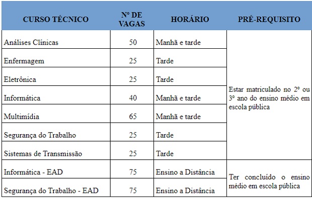 Neste semestre, além das vagas nos cursos técnicos presenciais para estudantes matriculados no ensino médio em escolas públicas, pessoas que concluíram o ensino médio podem se inscrever para as vagas dos cursos técnicos a distância.