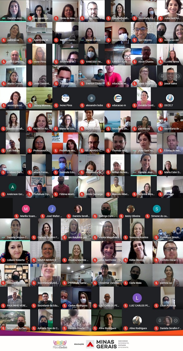 Nesta semana, mais prefeitos, secretários e equipes de prefeituras do interior de Minas se reuniram com a secretária de Estado de Educação de Minas Gerais, Julia Sant’Anna, para conhecer mais sobre o projeto Mãos Dadas. A cada semana, a Secretaria de Estado de Educação de Minas Gerais (SEE/MG) promove rodadas para apresentação da proposta. Os encontros on-line estão ocorrendo desde o mês de março e também contam com a participação de representantes da Associação Mineira de Municípios (AMM).