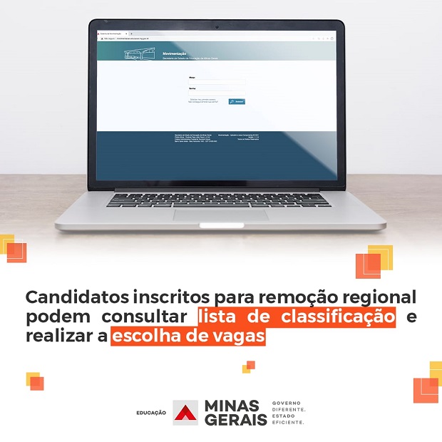 A Secretaria de Estado de Educação de Minas Gerais (SEE/MG) divulgou nesta quinta-feira (20/5) a lista de classificação por município dos servidores efetivos do quadro de magistério da rede estadual de ensino que se inscreveram, no mês de outubro do ano passado, para o processo de remoção regional. A partir do resultado, os profissionais têm até o próximo domingo (23/5) para fazer a escolha das vagas. A divulgação da lista e o processo de escolha de vagas ocorrem no site www.movimentacao.educacao.mg.gov.br.