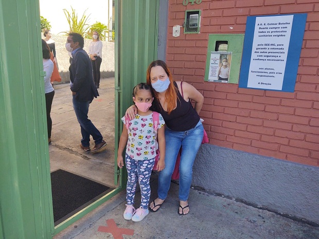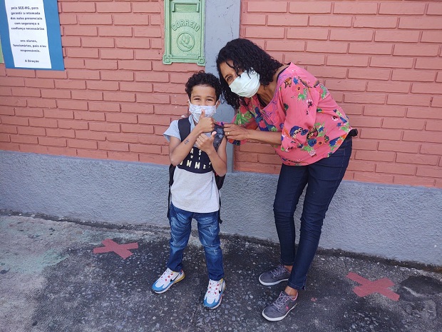 Não menos empolgado, o aluno Guilherme Isaque dos Santos sorria com os olhos ao ver a movimentação na porta da escola. Também no primeiro ano do ensino fundamental, ele estava estreando a convivência presencial em sala de aula. “Eu estou muito feliz em poder conhecer a professora e os coleguinhas”, disse, respeitando as marcações na fila da unidade de ensino e os protocolos, como uso de máscara e higienização das mãos com álcool em gel. A mãe do Guilherme, Luciana Marisa Nogueira, compartilhava do mesmo sentido do filho. Mesmo reconhecendo que o ensino remoto desempenhou bom papel, ela considera que nada melhor que a presença em sala de aula. “Foi um bom momento, já tem muito tempo que estamos em casa, agora está mais tranquilo um pouco, temos vacina, então está mais seguro de permitir que ele venha para a escola”, analisou.