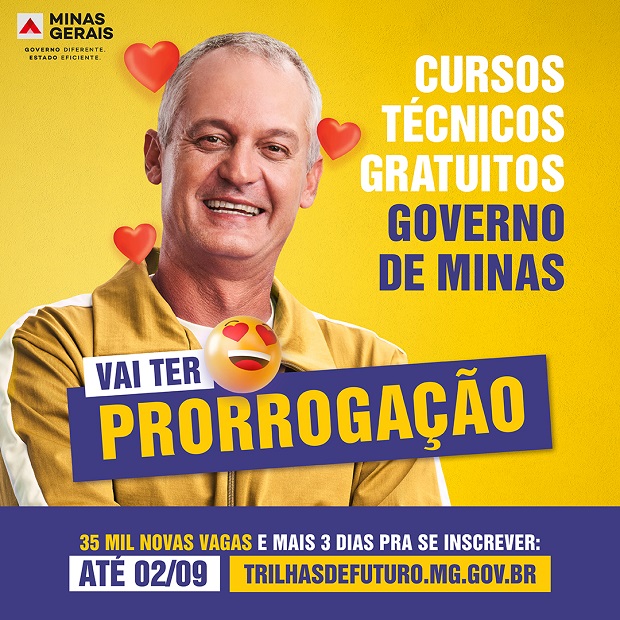 A Secretaria de Estado de Educação de Minas Gerais (SEE/MG) ampliou o número de vagas que serão ofertadas no projeto Trilhas de Futuro. Anteriormente, seriam ofertadas 40 mil vagas em cursos técnicos gratuitos, com a ampliação esse número aumentou para 75 mil. O período de inscrição também foi alterado e, a partir de agora, os interessados têm até o dia 2 de setembro para realizar o cadastro no site www.trilhasdefuturo.mg.gov.br.