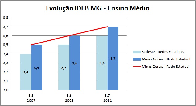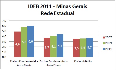 A rede estadual mineira é a 3ª melhor do país de acordo com o Ideb 2011, tendo alcançado o índice de 3,7 e cumprindo a meta estipulada para o período. Com essa nota, a rede estadual cresceu em relação ao Ideb 2009, quando alcançou um índice de 3,6. A rede estadual mineira ficou atrás apenas de Santa Catarina, que está na 1ª posição com Ideb de 4,0 e São Paulo, que ficou em 2ª com Ideb de 3,9.