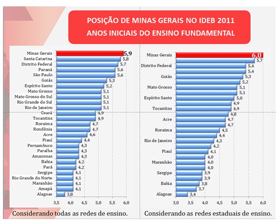 O PIP é ainda, seguramente, o instrumento que explica o bom desempenho da rede estadual de Minas Gerais no Índice de Desenvolvimento da Educação Básica (Ideb), apurado pelo Governo Federal. Na última avaliação, divulgada em 2012, a rede estadual pública mineira alcançou o índice 6 (seis) nos anos iniciais do ensino fundamental (1º ao 5º anos), padrão que é considerado pelo Ministério da Educação (MEC) como média dos países desenvolvidos. A rede pública estadual de Minas foi a primeira e única do Brasil a alcançar esse índice. Considerando todas as redes, Minas também ocupa a dianteira do ranking, com Ideb de 5,9.