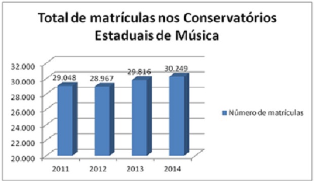 Veja a evolução das matrículas nos Conservatórios nos últimos quatro anos: