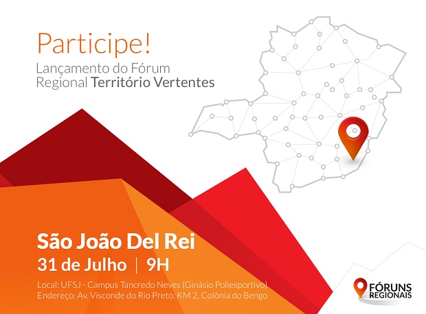 O Fórum Regional de Governo do Território Vertentes será instalado nesta sexta-feira (31 de julho), em São João Del Rei, na UFSJ Campus Tancredo Neves (Ginásio Poliesportivo). Mais informações no www.forunsregionais.mg.gov.br/.
