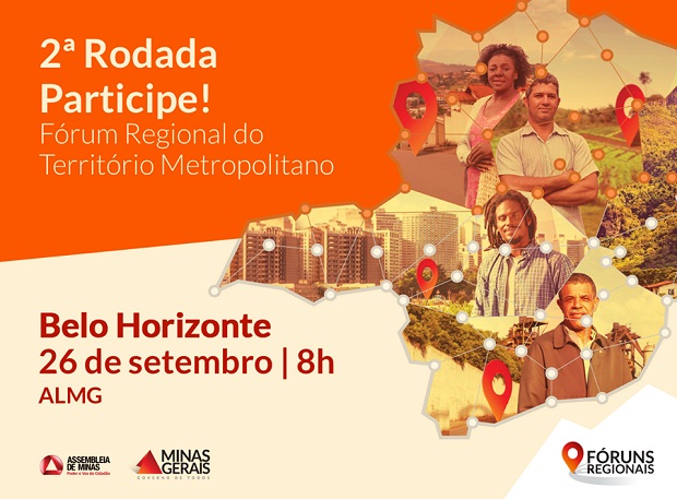 Belo Horizonte recebe, no próximo sábado (26/9), a partir das 8h, a 2ª rodada do Fórum Regional de Governo – Território Metropolitano. A plenária de abertura irá acontecer na Assembleia Legislativa do Estado de Minas Gerais e, na sequência, os grupos de trabalho vão se dividir entre espaços na própria ALMG e entorno, Escola do Legislativo, Crea-MG e Cemig.