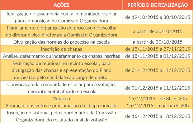 Veja aqui o Cronograma de Execução do Processo de Escolha de Diretor e Vice-diretor de Escola Estadual: