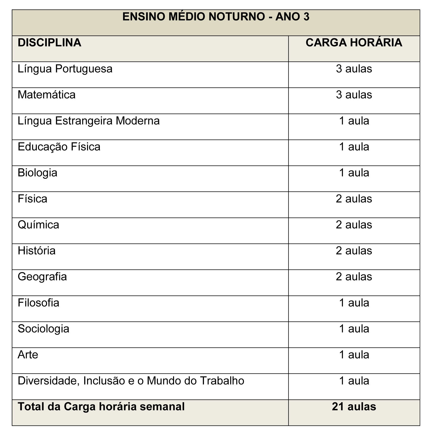 O Ensino Médio noturno terá 200 horas de aulas não presenciais (monitoradas) que serão reservadas para o trabalho de conteúdos interdisciplinares, que possam ser desenvolvidos além dos muros da escola.
