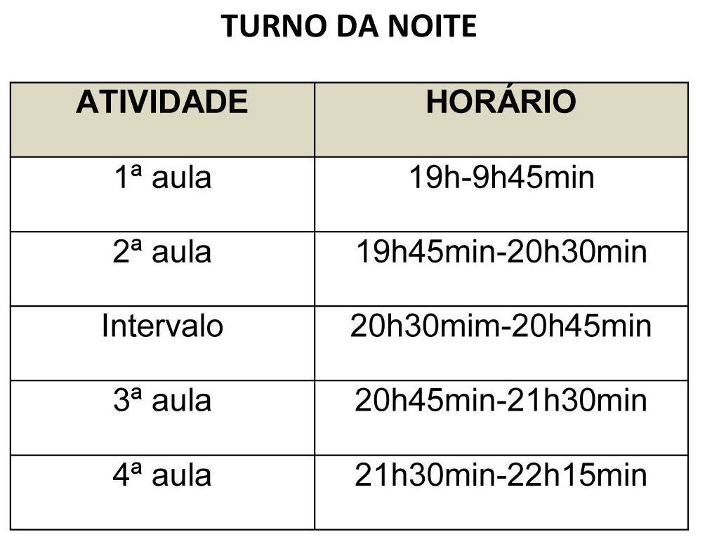 Uma das mudanças se refere ao horário de entrada do ensino regular à noite e da EJA, que pode passar de 18h15 para as 19 horas. A saída também poderá mudar, de 22h30 para 22h14. A decisão de horário fica a cargo de cada escola.