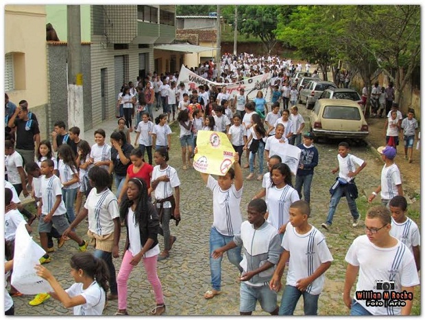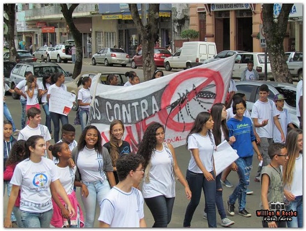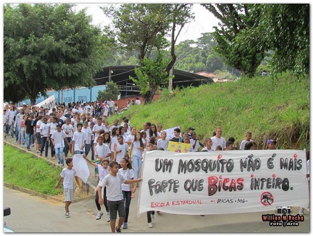 A Escola Estadual Deputado Oliveira Souza promoveu uma passeata nas ruas do município de Bicas com os alunos, professores e servidores para conscientizar a população sobre as doenças causadas pelo mosquito Aedes aegypti.
