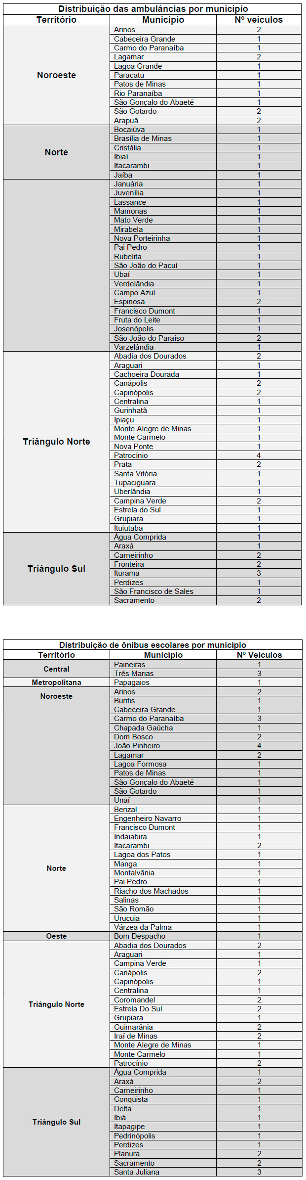 Os investimentos nas áreas da saúde e educação são resultados de demandas dos Fóruns Regionais de Governo. “Estamos celebrando uma entrega extremamente importante para os municípios da região. Temos aqui hoje 60 prefeitos presentes. Cada um deles recebendo um ou dois, às vezes mais, veículos para transporte escolar e para assistência à saúde. Só quem não sabe ou não conhece Minas Gerais não dá importância ao que estamos fazendo aqui hoje. Um estado com tanta diversidade precisa, fundamentalmente, daquilo que os engenheiros chamam de logística, que é o transporte, a mobilidade. Não tem como você manter equipe médica permanente em um município de 3 mil, 2 mil, mil habitantes. Então, você tem de ter formas de transportar um paciente ou um médico até outro município. Não tem como nós termos escolas bem equipadas em cidades de 3 mil, 4 mil, 5 mil habitantes. Então, você tem que fazer o transporte escolar funcionar para que esses municípios, esses cidadãos e cidadãs, tenham serviços públicos de qualidade. Da mesma forma, equipamentos para a polícia, para a segurança pública. Então, o equipamento é fundamental para a qualidade de vida do cidadão de Minas Gerais e é fundamental para o prefeito e a prefeita desempenhar bem a sua missão”, explicou o governador.