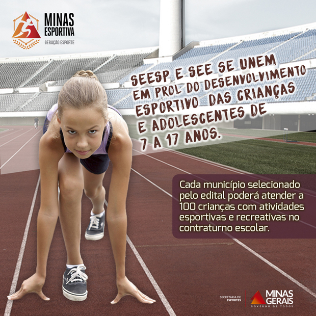 A Secretaria de Estado de Esportes (Seesp) e a Secretaria de Estado de Educação (SEE) publicaram, nesta sexta-feira (1/9), o edital 01/2017 para seleção dos municípios interessados em executarem o programa Minas Esportiva Geração Esporte na gestão 2017/2019. Quando forem iniciadas as atividades, a previsão é de que cerca de 20 mil crianças e adolescentes sejam atendidos.