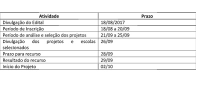 A Secretaria de Estado de Educação (SEE) prorrogou o cronograma para inscrição e análise de trabalhos do eixo Núcleos de Pesquisas e Estudos Africanos, Afro-Brasileiros e da Diáspora – Ubuntu/Nupeaas, do Programa de Iniciação Científica no Ensino Médio. As escolas poderão realizar inscrição até o dia 20 de setembro, através de preenchimento de formulário disponibilizado pelas Superintendências Regionais de Ensino (SREs). O período de análise e seleção dos projetos ocorrerá em uma etapa única, a ser realizada entre os dias 21/09 e 25/09. O resultado final deve ser divulgado no dia 29/9 e a previsão de início do projeto é no dia 02 de outubro.