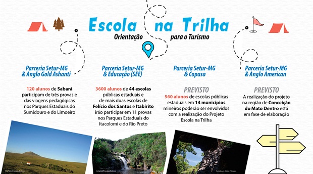 O contato com a natureza, o meio ambiente e a cultura de algumas regiões de Minas Gerais pode ser uma importante fonte de conhecimentos. Esta prática pedagógica é justamente o que ocorre a partir do Projeto Escola na Trilha – Orientação para o Turismo, uma iniciativa do Governo de Minas Gerais, por meio da Secretaria de Estado de Turismo (Setur-MG), em parceria com a Secretaria de Estado de Educação (SEE) e a Copasa.