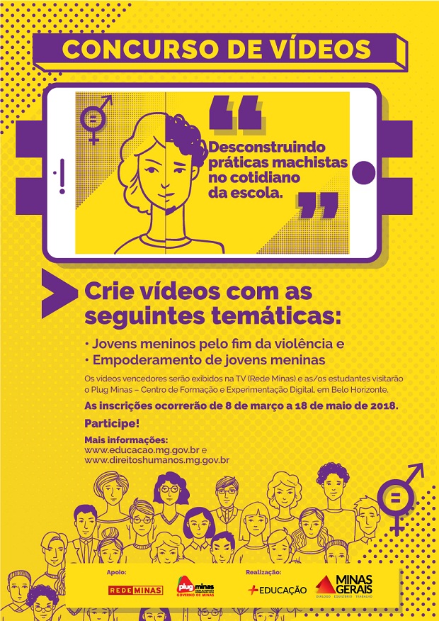 O prazo para participar do concurso de vídeos “Descontruindo Práticas Machistas No Cotidiano das Escolas” foi ampliado até o dia 18 de maio. A iniciativa, lançada durante a segunda edição do projeto Educa e Empodera as Minas, no dia 8 de março, é realizada pela Secretaria de Estado de Educação de Minas Gerais (SEE-MG), em parceria com a Secretaria de Estado de Direitos Humanos, Participação Social e Cidadania de Minas Gerais (Sedpac-MG) e com a emissora Rede Minas.