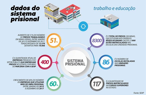 De acordo com a Seap, o número de presos trabalhando em Minas Gerais cresceu 51%, entre janeiro de 2015 e dezembro de 2017, saltando de 12.576 para 19.006 neste período.