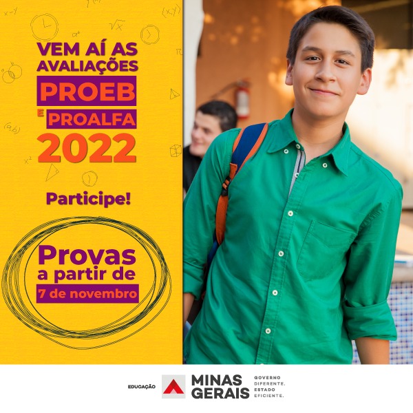 Os exames serão realizados pela Secretaria de Estado de Educação (SEE/MG), entre os dias 7 e 18 de novembro, nas escolas pertencentes às 47 Superintendências Regionais de Ensino (SREs) do estado. O Proeb e o Proalfa integram o Sistema Mineiro de Avaliação e Equidade da Educação (Simave).