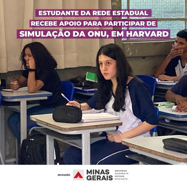 Entre os cerca de quatro mil estudantes de ensino médio de todo o mundo que estarão em Boston, nos Estados Unidos, para participar do Harvard Model United Nations (HMUN), está a estudante mineira Sophia Lima Rodrigues, da Escola Estadual Professor Cláudio Brandão, em Belo Horizonte. Ela foi aprovada com sua delegação, que inclui outros sete estudantes de todo país, para participar da conferência que é a maior e mais prestigiada simulação diplomática da Organização das Nações Unidas (ONU), realizada na Universidade de Harvard.